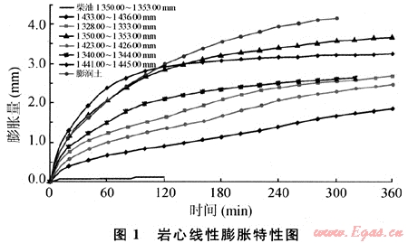 2) 儲層巖石中黏土礦物含量高。黏土礦物中以膨脹性蒙脫石為主,黏土線性膨脹大,水敏性極強。巖石中黏土礦物含量10%~30.0%,其中蒙脫石含量為70%~80%,巖心粉清水線性膨脹量達到4.0mm,水敏指數(shù)0.71~0.95,水敏性極強(見圖1、表1)。