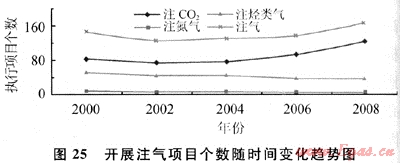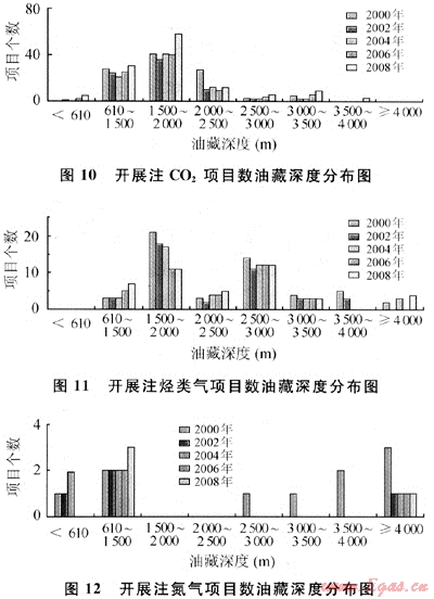 美國《油氣雜志》200002008年發(fā)表的《世界EOR調(diào)查報告》[1~5],從7個方面說明了注氣條件以及發(fā)展趨勢。