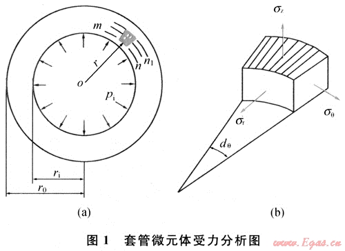 套管在井下情況的受力較為復(fù)雜,為了分析方便,主要考慮套管受內(nèi)壓和外擠作用(即管內(nèi)外壓差),而忽略軸向力和溫度對管柱應(yīng)力的影響時(shí),套管屬于中厚壁管(圖1)。