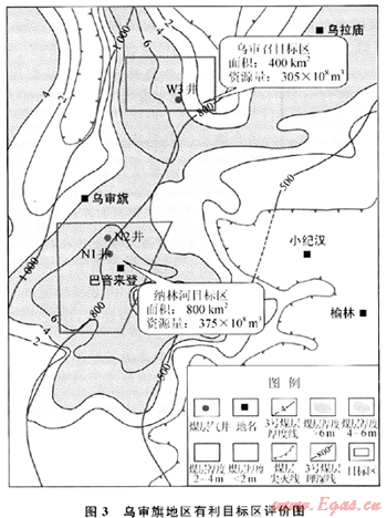 3) 北部的烏審召區(qū)塊和南部的納林河區(qū)塊,煤層氣保存條件好,含氣量高,勘探潛力大,可作為下一步煤層氣勘探有利目標區(qū)。