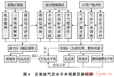 第三,依據(jù)區(qū)帶特征,開展針對性研究,進一步落實富集區(qū):①蘇里格中區(qū)——將高精度二維地震和有限的三維地震資料相結(jié)合,預測砂巖厚度及含氣性;描述河道砂體展布范圍,刻畫有效儲層分布特征,進行相對富集區(qū)篩選;②蘇里格東區(qū)——在分析開發(fā)井的基礎(chǔ)上,靜態(tài)與動態(tài)結(jié)合,對盒8段、山1段和下古生界進行再認識,上、下古生界綜合考慮,落實富集區(qū);③蘇里格氣田西區(qū)——深化地層水分布規(guī)律研究,綜合應用地質(zhì)、測井、測試、地層水分析及生產(chǎn)動態(tài)等資料,多學科交叉滲透,在統(tǒng)一的技術(shù)思路下對蘇里格氣田西區(qū)氣水關(guān)系進行一體化研究,通過“避水找氣”,落實富集區(qū)。