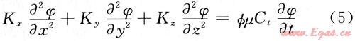 假設(shè)氣藏均質(zhì)、各向異性、水平等厚的微可壓縮流體流動,其控制方程為: