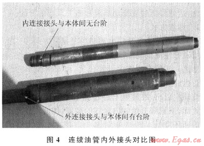 針對以上問題,采用流量計(jì)算公式驗(yàn)證連續(xù)油管內(nèi)連接接頭(內(nèi)徑:11mm,外徑:38.1mm)最大允許施工排量,由結(jié)果可知參數(shù)滿足水平井改造要求,因此采用連續(xù)油管內(nèi)連接接頭,使接頭與本體外徑一致,消除了遇阻遇卡風(fēng)險(xiǎn)(圖4)。在某井上使用連續(xù)油管內(nèi)連接接頭,順利實(shí)施了連續(xù)油管水平段洗井替泥漿和拖動(dòng)布酸作業(yè),優(yōu)化效果明顯。