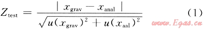 式中xgrav為稱量法測定的摩爾分?jǐn)?shù)(預(yù)賦值);xanal為分析方法測定的摩爾分?jǐn)?shù);u(xgrav)為稱量值的標(biāo)準(zhǔn)不確定度;u(xanal)為分析值的標(biāo)準(zhǔn)不確定度。