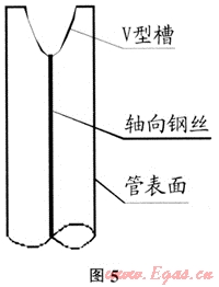 管口毛刺、翻邊清理完成后,為防止碰頭完成后天然氣沿骨架與PE材料之間空隙竄動(dòng)而損傷管道本體,需對(duì)斷口管壁開(kāi)槽、填料進(jìn)行封堵,用砂輪機(jī)將斷口管壁磨成V形或U形(如圖5),采用與復(fù)合管母材相同材質(zhì)的PE焊條用熱風(fēng)機(jī)同時(shí)加熱母材與焊條,當(dāng)焊條與母材融化發(fā)軟時(shí),將焊條壓入V形槽,注意須先將焊條氧化層打磨掉,封堵應(yīng)將骨架完全覆蓋。在開(kāi)槽時(shí)會(huì)有火花及粒狀或粉狀PE材料飛濺,施工人員應(yīng)佩帶好防塵護(hù)具。