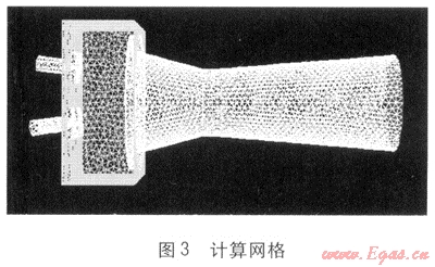 首先利用Pro/E軟件繪制引射器幾何模型,然后將其導(dǎo)入Fluent前處理軟件Gambit中生成計算網(wǎng)格,見圖3。