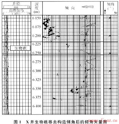 生物礁的高能環(huán)境決定了不論礁體是否白云石化或白云化程度如何,礁相自然伽馬幅度值比正常的長興組石灰?guī)r值低,通常小于15API,一般在9~12API之間,且無鈾自然伽馬值也低于周圍巖石,同時具有較高的電阻率值,補償中子和補償聲波值與致密石灰?guī)r一致。由于成層性差、無層理和高電阻率,地層傾角為雜亂模式或無矢量點的空白模式;成像測井的靜態(tài)和動態(tài)圖顯示顏色較為均一致密塊狀特征。礁灘相自然伽馬值略高,識別相對困難,易發(fā)育儲層,可根據(jù)與礁核的關(guān)系和成像測井的巖石結(jié)構(gòu)特征加以識別。測井解釋X井生物礁厚度約36m。