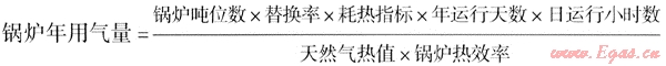b) 鍋爐能耗替代法:由于對于某種特定的工業(yè),鍋爐用氣量和工藝用氣量通常具有一定的比例關(guān)系,因此可以通過預(yù)測工業(yè)鍋爐的用氣量來預(yù)測城市總工業(yè)用氣量,該方法主要適用于工業(yè)發(fā)展方向明確、工業(yè)鍋爐資料較全的城市,其中鍋爐用氣量計(jì)算方法如下: