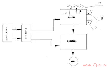 如圖4所示,本具體實施方式中,所述控制電路板16包括電源輸入單元、變壓器單元、、信息處理單元以及輸出驅(qū)動控制單元;所述電源輸入單元與變壓器單元電連接;所述變壓器單元與信息處理單元和輸出驅(qū)動控制單元電連接:所述信息處理單元與輸出驅(qū)動控制單元電連接;所述輸出驅(qū)動控制單元與電動機13電連接;所述信息處理單元與電源輸入控制開關(guān)17、上升開關(guān)19、下降開關(guān)20、上限位開關(guān)14及下限位開關(guān)15。由于本研究項目實現(xiàn)自動化控制的工作電路原理采用的是現(xiàn)有常規(guī)技術(shù),故其具體的電路連接關(guān)系不在此贅述。