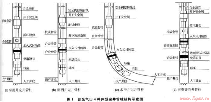 1) 普光高酸性氣田設(shè)計采用的常規(guī)井、監(jiān)測井、水平井、套變井等4種完井管柱,充分考慮到了高酚眭氣田的特殊安全要求,設(shè)計科學(xué),針對性強。