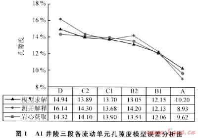 崖城13-1氣田開發(fā)時期較長,對于孔隙度模型的研究一直未停止。A1、A2、A8井在儲層段采用低侵取心技術進行全井段取心,收獲率高,巖心具有代表性。因此,以生產井巖心、三孔隙度測井曲線為基礎,分流動單元建立孔隙度計算模型。