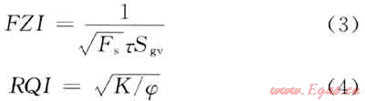 定義流動單元指標FZI和儲層質量系數(shù)RQI為: