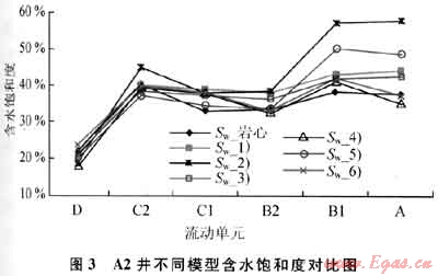 常規(guī)電法測井計算的全氣田的含水飽和度約為36%,而按照流動單元建立的模型6)計算含水飽和度約為29%,地質儲量差異約80×108m3。