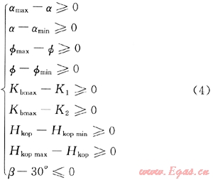 根據(jù)分支井井眼軌道優(yōu)化設(shè)計(jì)的要求可提出其設(shè)計(jì)限制條件為: