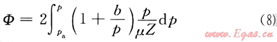 定義考慮氣體滑脫效應(yīng)影響的修正擬壓力函數(shù)[2],即