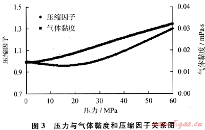 選取均質(zhì)頁巖氣藏中心的1口壓裂井,地層參數(shù)如下:絕對滲透率(K∞)為0.01mD 、有效厚度(h)為100m、氣井半徑(rw)為0.1m、氣藏邊界半徑(re)為250m、氣藏溫度(T)為100℃,頁巖氣相對密度(γ)為0.62,其中頁巖氣黏度(μ)和壓縮因子(Z)根據(jù)其組分及儲層溫度分別采用Hall-Yarborough法和Carr-Burrows圖版法獲得[8](圖3)。