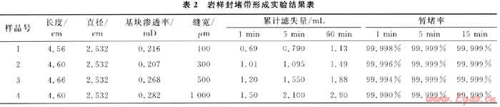 2.2.2封堵帶強(qiáng)度實(shí)驗(yàn)及其結(jié)果