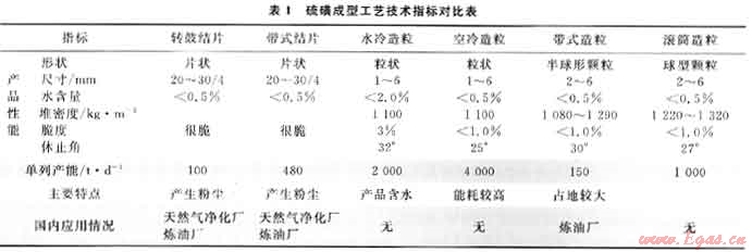 由硫磺成型工藝比較(表1)可見,凈化廠若采用單列產(chǎn)能500~1000t/a的硫磺成型工藝,需10余臺(tái)硫磺成型裝置,占地面積大,運(yùn)行及維護(hù)成本高。單列產(chǎn)能2000t/d以上工藝相互對(duì)比,空冷造粒工藝能耗高,硫磺脆度大,在運(yùn)輸過程中易形成粉塵,帶來(lái)火災(zāi)、爆炸隱患;而經(jīng)水冷造粒成型的硫磺,硬度大,含水,不易產(chǎn)生粉塵。因此,凈化廠采用國(guó)內(nèi)首套濕法硫磺成型工藝,建成4套DEVC0濕法成型機(jī),產(chǎn)能360t/h,硫磺適宜的含水量降低了生產(chǎn)及裝車過程的粉塵,安全性能高。