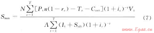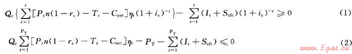 單井初期產(chǎn)量界限指在一定的開發(fā)技術(shù)和財(cái)稅體制下,氣井所獲得的收益能彌補(bǔ)全部投資、采氣操作費(fèi)并獲得最低收益率時初期所應(yīng)達(dá)到的最低產(chǎn)量,當(dāng)氣井初期產(chǎn)量大于這一值時,則認(rèn)為經(jīng)濟(jì)上是可行的。計(jì)算方法為同時滿足公式(1)和(2)中的Qc的值。即