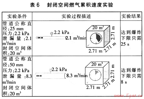 從表6不難看出,燃氣泄漏后在封閉空間的累積速度非???,這就意味著在封閉空間燃氣泄漏非常危險。