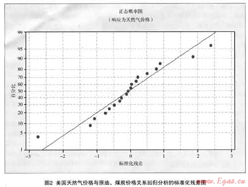 經(jīng)過(guò)回歸分析后,得出天然氣與原油、煤炭的價(jià)格關(guān)系為