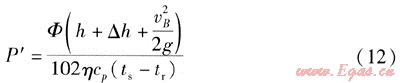 常壓熱水鍋爐集中供熱系統(tǒng)循環(huán)泵功率P′的計(jì)算式為: