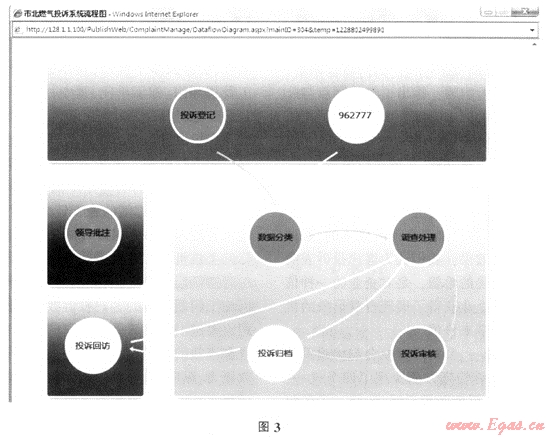由于每條投訴信息均規(guī)定了統(tǒng)一的處理流程,因此,我們可以通過(guò)系統(tǒng)查詢某條信息正處于投訴處理的哪個(gè)階段,并以不同顏色予以區(qū)分,其中,綠色表示已經(jīng)通過(guò)的階段,白色表示尚未完成的階段,并且,某條投訴若上級(jí)或領(lǐng)導(dǎo)作過(guò)批注,則以紅色表示,具體如圖3所示: