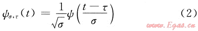 當σ越大時,ψσ,τ(t)伸展越寬、波形越肥胖、主頻越低。當σ越小,ψσ,τ(t)在時間軸上壓縮越強、波形越窄、主頻越高。ψσ,τ(t)是由小波母函數(shù)ψ(t)∈L2(R)在時間軸上經伸縮與平移得到的[9],即
