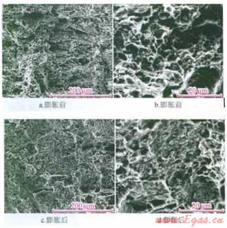 2)J55套管膨脹前后均屬于韌性斷裂,膨脹后J55套管斷口上的韌窩小而淺,且分布不均勻,斷面較膨脹前更平整。