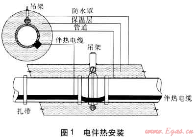 電伴熱的功能是通過伴熱電纜用電能彌補(bǔ)管道燃?xì)庠谑褂眠^程中的熱損失或提高管道燃?xì)饩植康臏囟?,使管道燃?xì)饩植康臏囟染S持在一定的范圍內(nèi)。