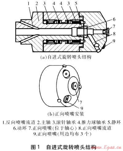 針對(duì)這一問(wèn)題,本文提出利用自進(jìn)式旋轉(zhuǎn)射流清理管道的工藝,并對(duì)該工藝中的關(guān)鍵設(shè)備——自進(jìn)式旋轉(zhuǎn)噴頭的關(guān)鍵參數(shù)展開(kāi)研究。