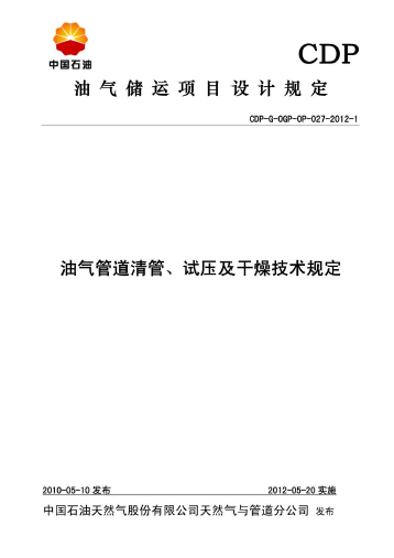 油氣管道清管、試壓及干燥技術(shù)規(guī)定CDP-G-OGP-OP-027-2012-1