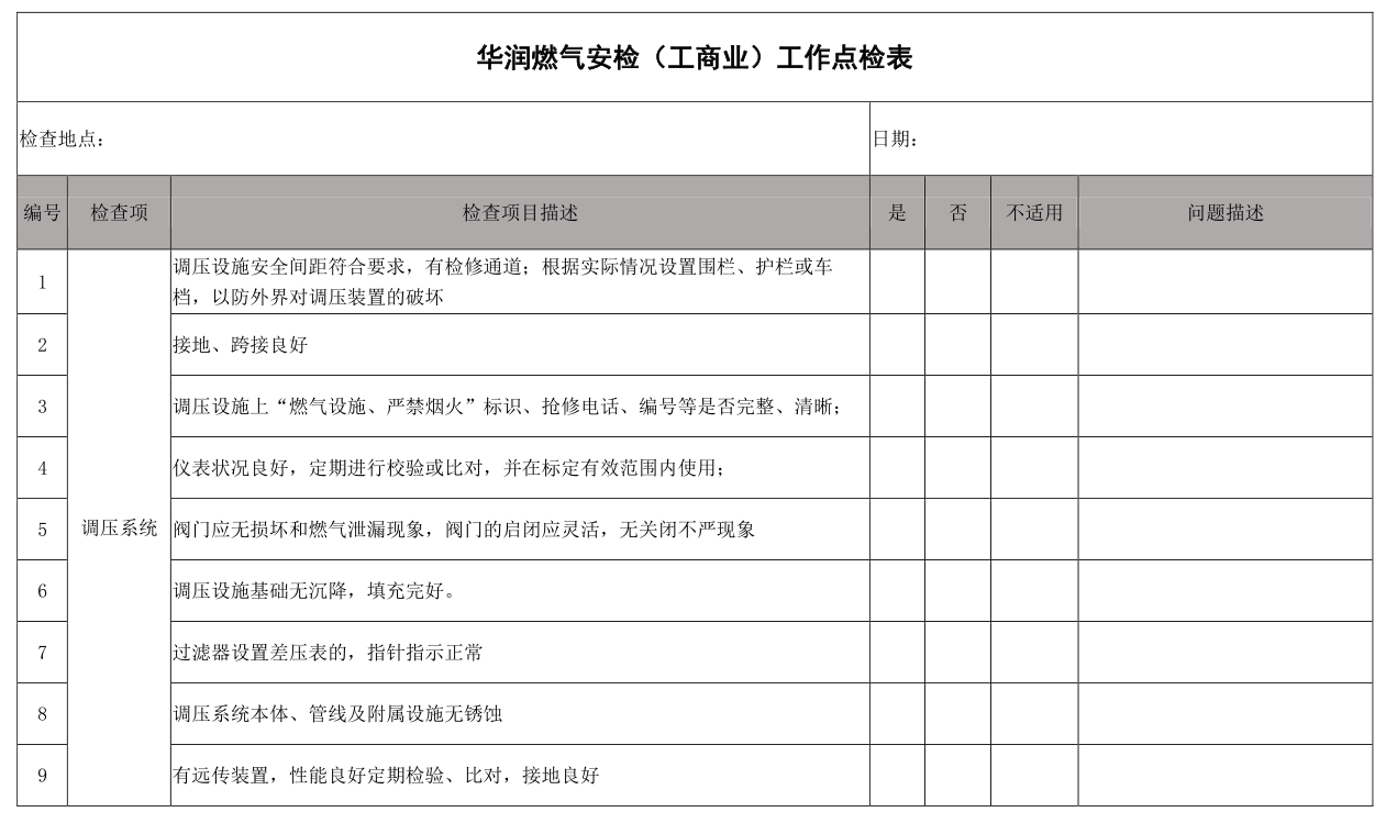華潤(rùn)燃?xì)獍矙z(工商業(yè))工作點(diǎn)檢表