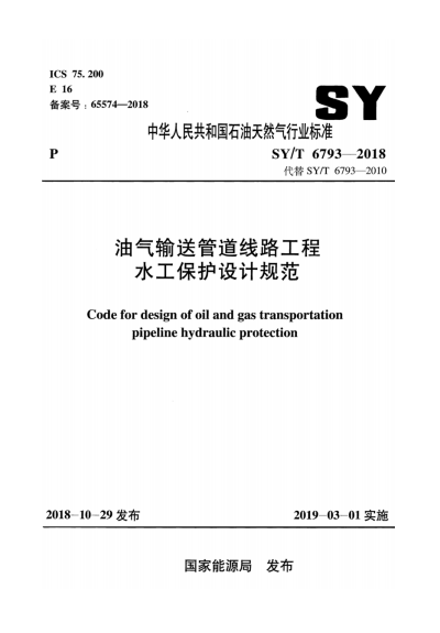 油氣輸送管道線路工程水工保護(hù)設(shè)計規(guī)范石油天然氣標(biāo)準(zhǔn)/T 6793-2018