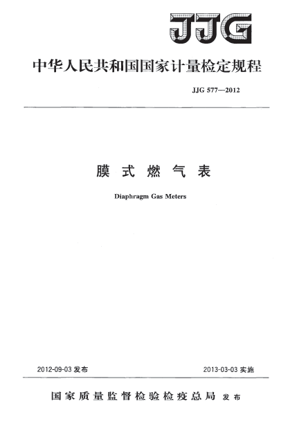 膜式燃?xì)獗鞪JG577-2012(計(jì)量檢定規(guī)程)