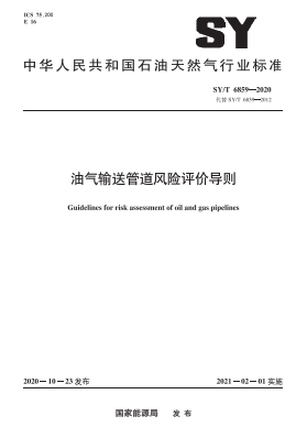 油氣輸送管道風(fēng)險評價導(dǎo)則SY∕T 6859-2020:本標(biāo)準(zhǔn)代替SY/T 6859—2012《油氣輸送管道風(fēng)險評價導(dǎo)則》,與SY/T 6859—2012相比,除編輯性修改外,主要技術(shù)內(nèi)容變化如下: