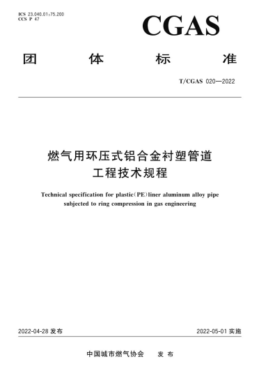 燃?xì)庥铆h(huán)壓式鋁合金襯塑管道工程技術(shù)規(guī)程T/CGAS 020-2022: