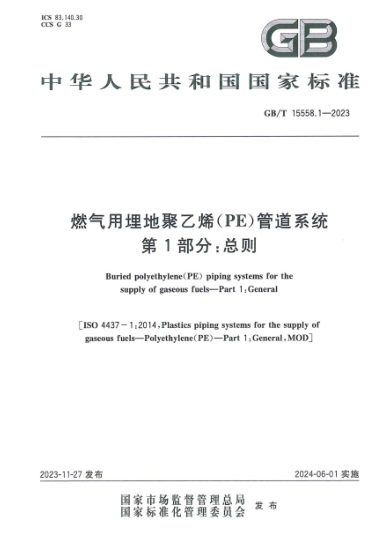 燃?xì)庥寐竦?a href=http://www.guoxinzhixin.com/e/tags/?tagname=%E8%81%9A%E4%B9%99%E7%83%AF target=_blank class=infotextkey>聚乙烯(PE)管道系統(tǒng) 第1部分:總則GB/T 15558.1-2023